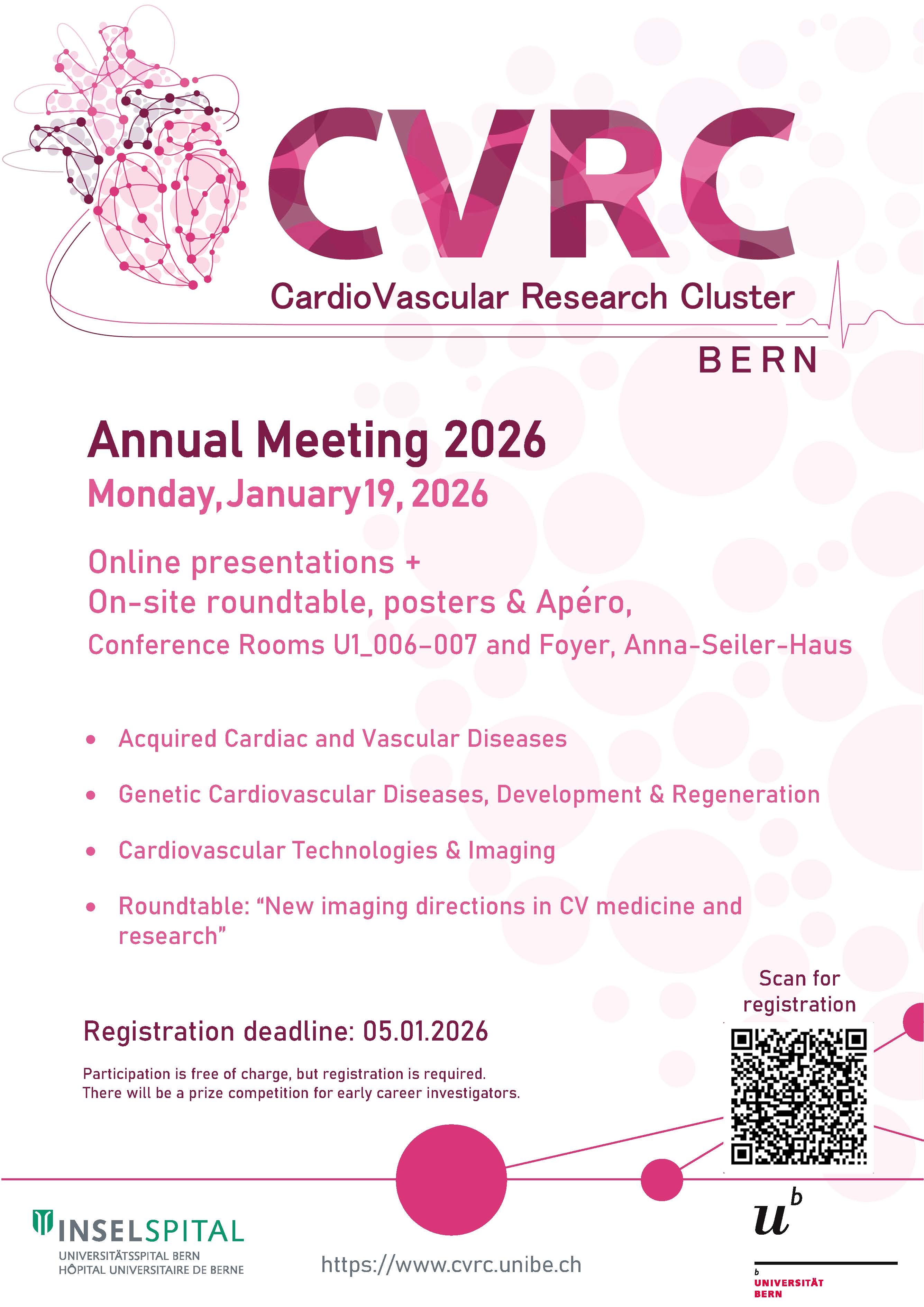 The Annual Meeting of the Cardiovascular Research Cluster Bern will take place on Monday, January 19, 2026.